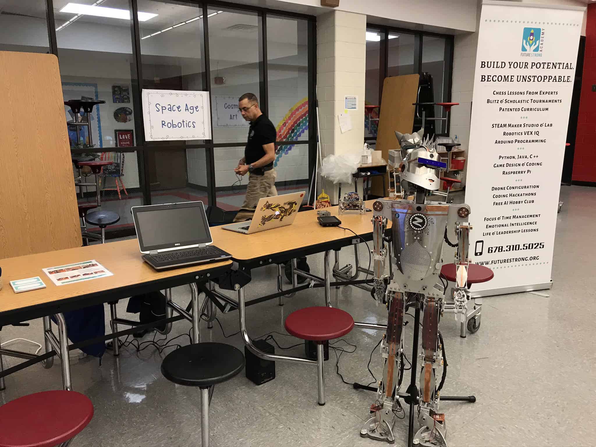 Zeus was conceived the same way many revolutionary products like Apple and Microsoft started, in a garage setting, back in 2015. The project began as building a hobby humanoid robot which then started finding its place in many shows and workshops in the US and virtual seminars around the world.