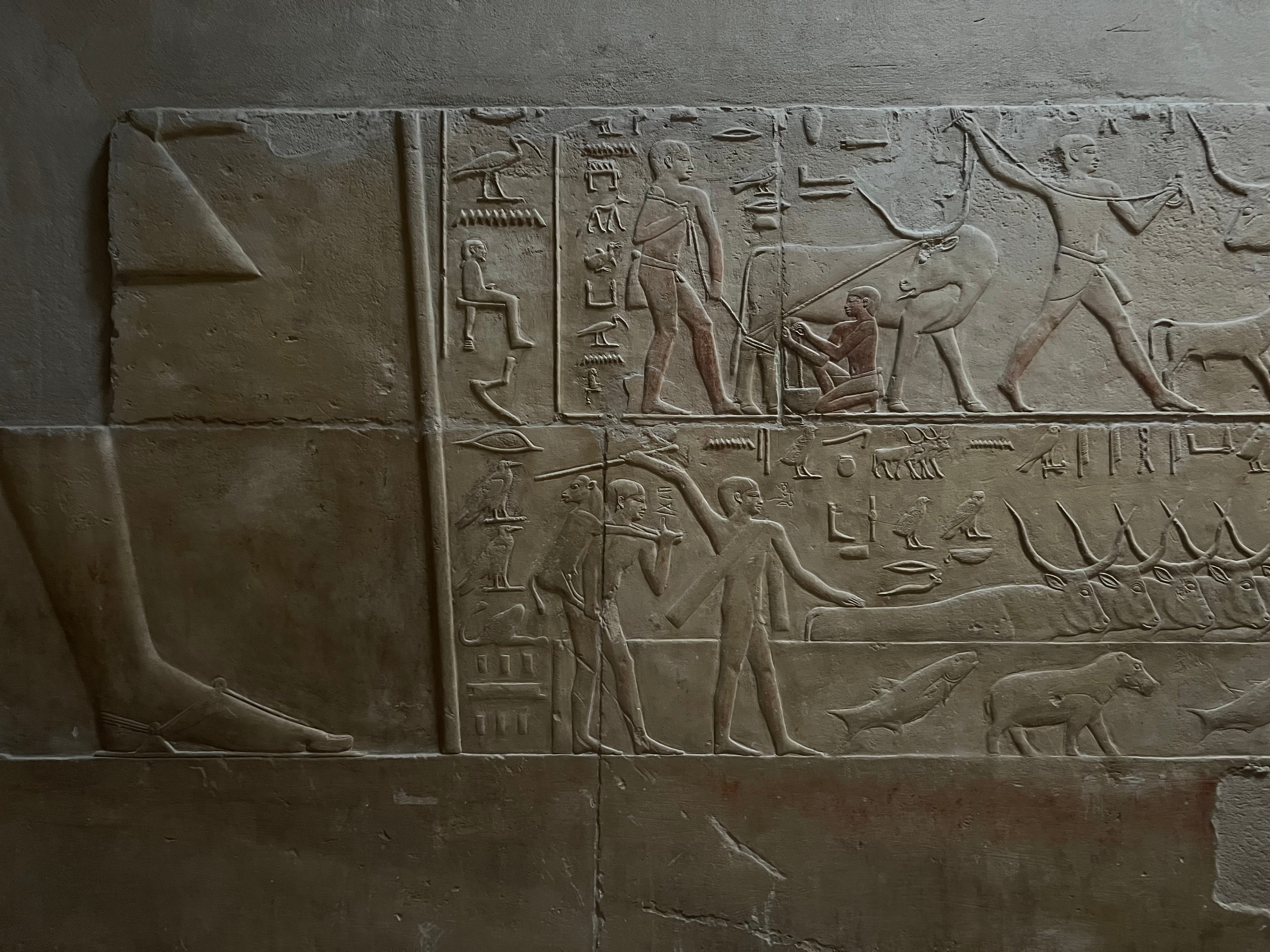 Inside the tomb, you begin to understand the life and times of Kagemni, his rituals, beliefs, and worldview. His massive mastaba tomb is famous for its exceptionally detailed, lively reliefs depicting everyday life: fishing in marshes, hunting, force-feeding geese and hyenas, cattle herding, dancers, and offerings.