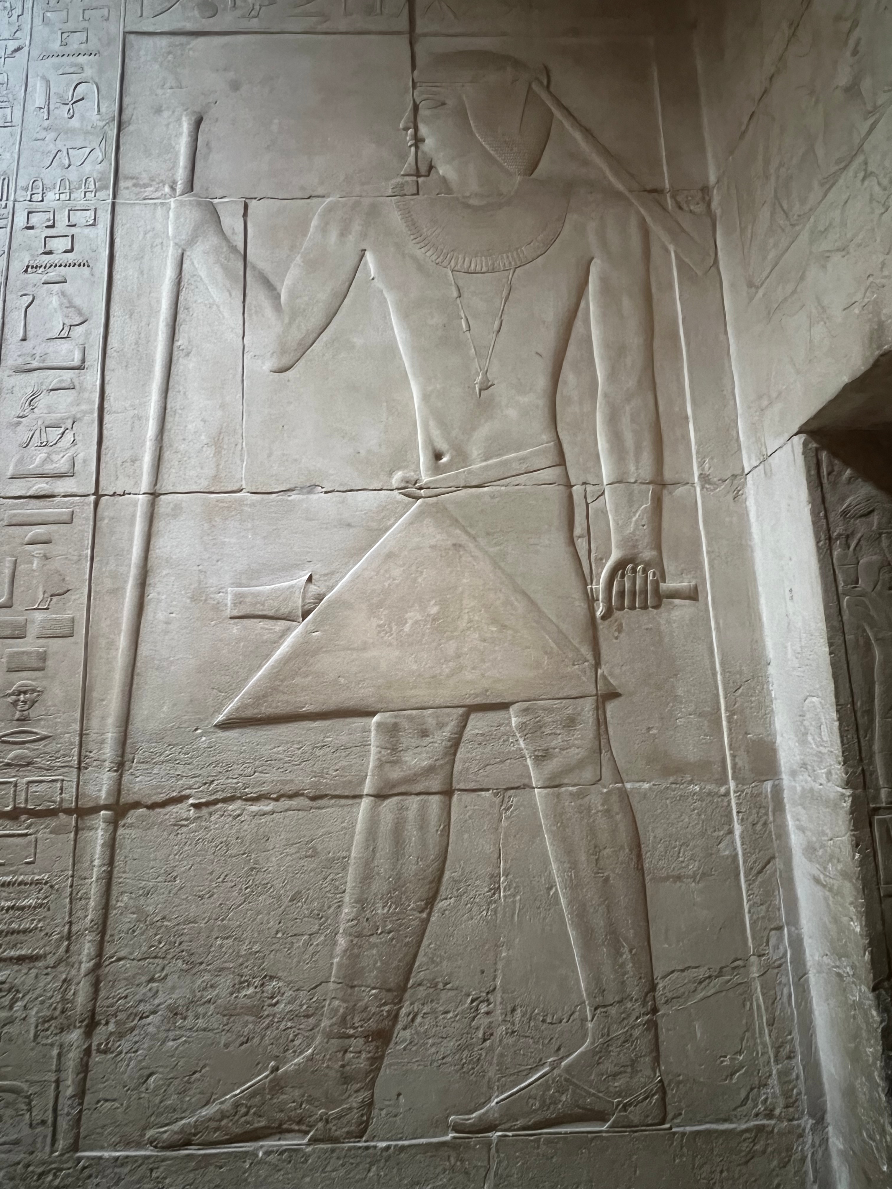 A relief of a tall Egyptian man in a gorgeous kilt and broad collar. Damn, that power can only come from literacy, not brute force.